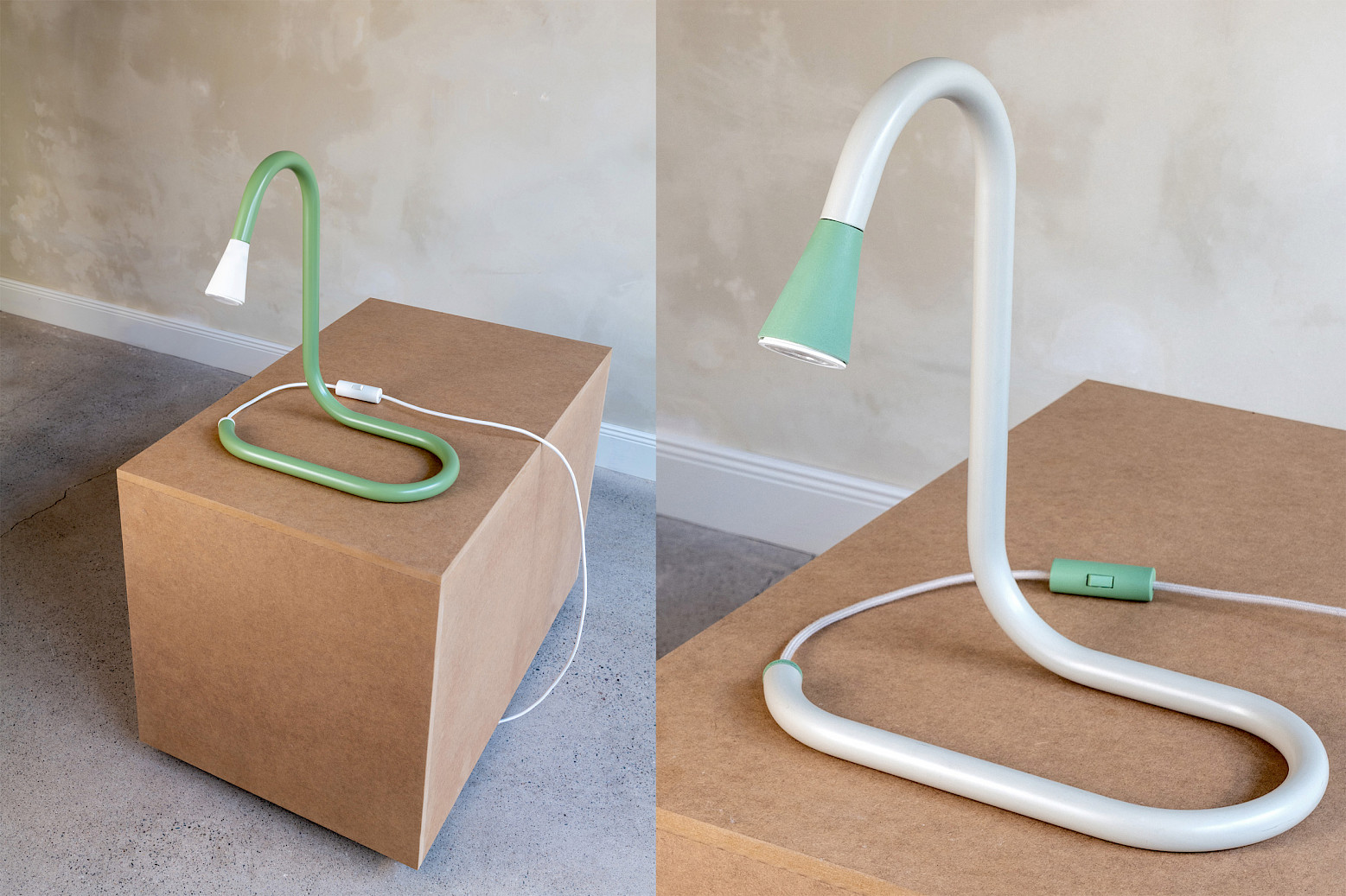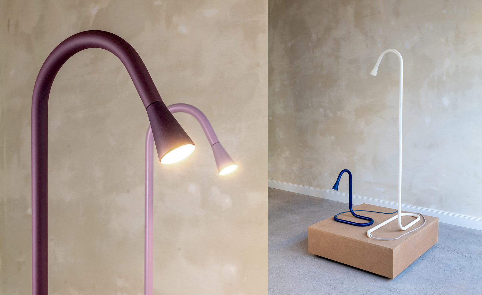 Wir zeigen und verkaufen im Showroom des AAPstudio in Köln unsere aktuellen Entwürfe. Basierend auf den Grundformen von Steh- und Tischleuchte ist jedes Objekt aus unserer Produktion ein Einzelstück und in seiner Farbgebung und Oberfläche individuell angefertigt.